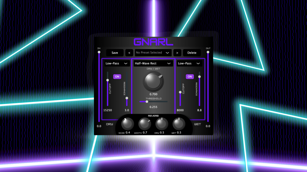 Unique distortion plugin with a choice of distortion algorithms, filters for the dry and wet channels as well as a reverb effect.